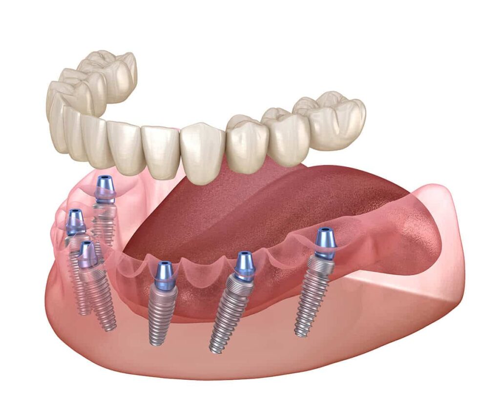 Six implants per arch create stronger load distribution than the All on 4 method.